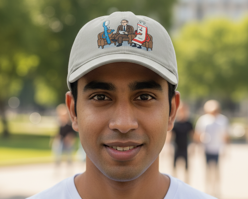 Prompt: A cap having Toothbrush and toothpaste arguing in couples therapy